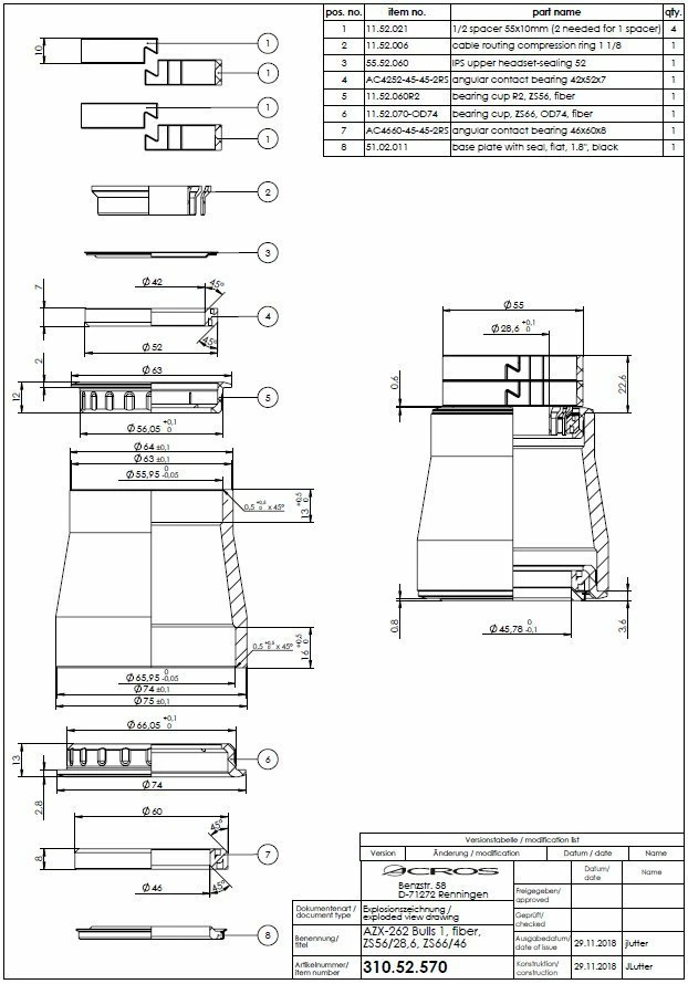 Acros Press Fit Tapered 1 1/8″ – 1.8″ AZX-262 Ohne Anschlag Bulls-1 Ø Unten 66mm