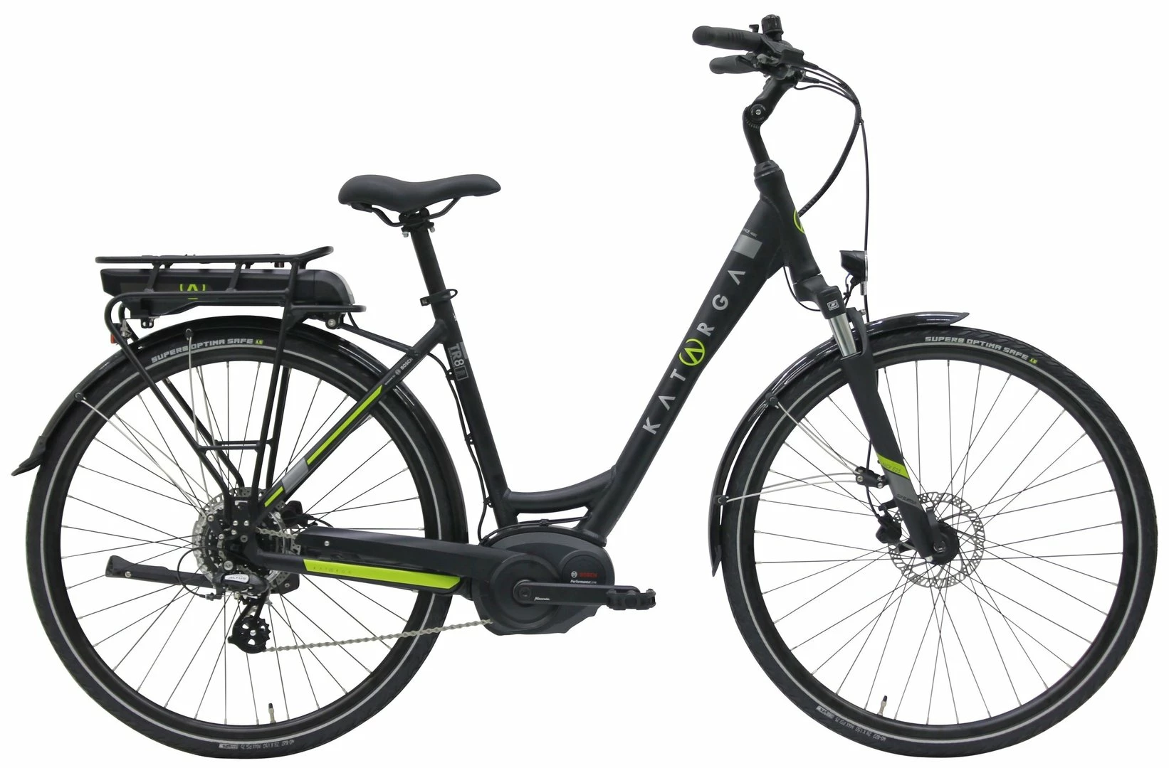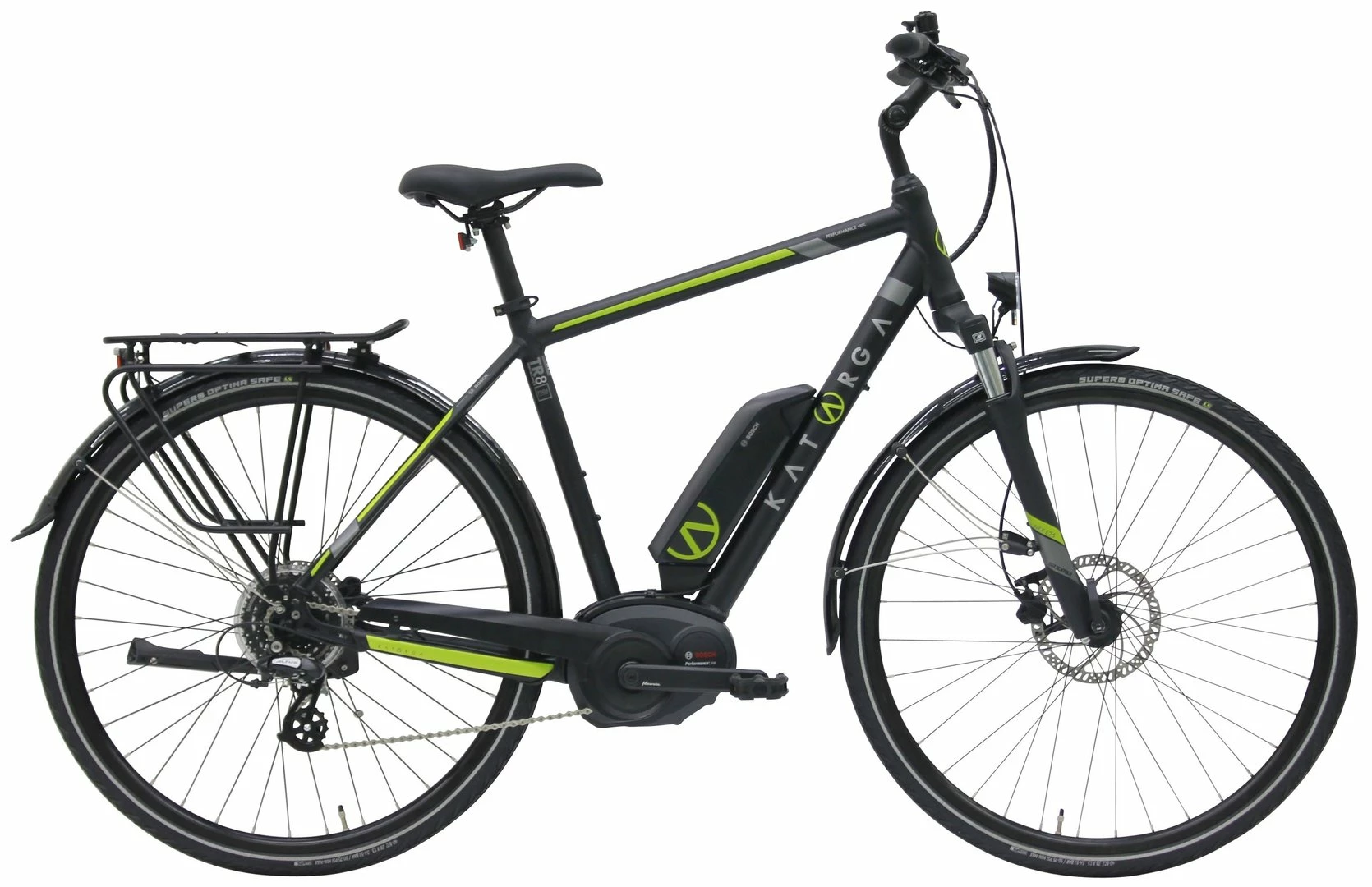7005 Alu-Rahmen mit innenverlegten Kabeln, NEX-E25-DS Federgabel, Altus 8-Gang Schaltwerk und Schalthebel, Tektro HD-M275 Disc-Bremsen (160/180mm), DDM-2 Hohlkammerfelgen, verstellbarer Lenkervorbau, Bosch Performance-Line Mittelmotor mit 60Nm Drehmoment, 400Wh oder 500Wh (Aufpreis) Akku, Supero Optima Safe Reifen 40-622, 15 Lux LED-Lampe, I-Rack Gepäckträger