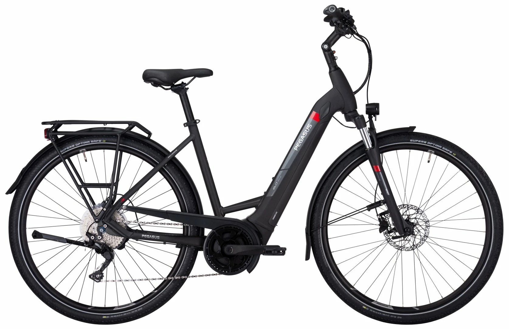 Voll ausgerüstet für Touren und tägliche Strecken, bietet das Premio EVO 10 sportlichen E-Bike-Fahrspaß auf Top-Niveau. Dabei können sich Fahrerinnen und Fahrer nicht nur auf die dynamische Unterstützung des Bosch Performance Line Antriebs verlassen, sondern verfügen gleichzeitig über den ergonomischen Komfort des aufwändigen Premio-EVO-Rahmenkonzepts mit komplett innen verlegter Kabelführung. Für zusätzliche sportliche Leistungsbereitschaft ist das hochwertige Trekking-E-Bike mit einer SHIMANO Deore 10-Gang-Schaltung ausgestattet. Für maximale Sicherheit sorgen die hydraulischen Scheibenbremsen und die SUPERO Optima Safe Reifen mit starkem Pannenschutz.