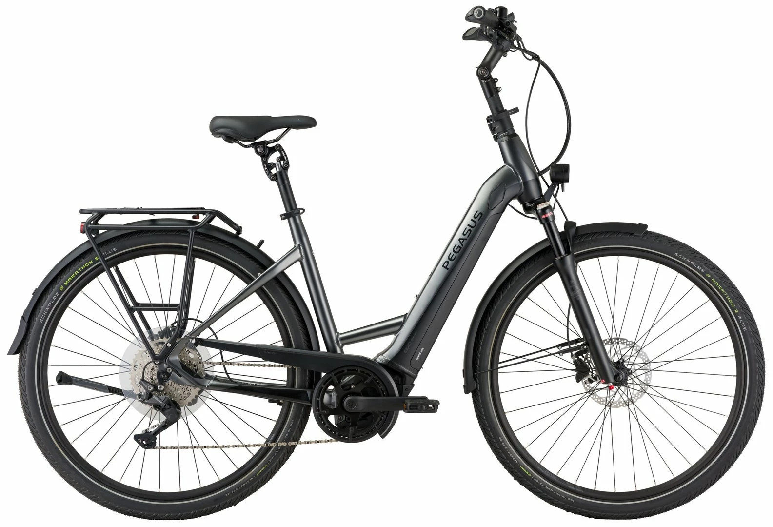 Wie perfekt Komfort und Kraft zusammen arbeiten können, beweist das PREMIO EVO 10 LITE COMFORT. Hochwertige Komponenten für ein besonders angenehmes Fahrerlebnis auf allen Strecken treffen auf die sportliche Power des stärksten Bosch Antriebs seiner Klasse. Das Ergebnis ist maximaler Komfort für lange Touren und tägliche Strecken verbunden mit der Sicherheit, auch anspruchsvollen Terrain problemlos meistern zu können. Formschön integriert in den besonders leichten Aluminiumrahmen liefern der Bosch Performance Line CX Motor mit dem erhöhten Drehmoment von 85 Newtonmetern und der PowerTube Akku volle Energie für ein sportliches Fahrerlebnis. Hier fügt sich die neue 10-Gang Shimano Deore Schaltung optimal ein. Bestmöglichen Komfort stellen dabei Austattungshighlights wie die Parallelogramm-Sattelstütze und der innovative All-Up-Vorbau für einfachste Höhen- und Winkelverstellung sowie seitliche Verdrehung über nur einen Hebel sicher. Zusätzlich verfügt das PREMIO EVO 10 LITE COMFORT über besonders breite 55mm Schwalbe Marathon E-Plus Reifen, die den Komfort gemeinsam mit der Mobie Luftfedergabel noch weiter erhöhen. So entsteht aus Kraft und Komfort, der Fahrspaß, auf den man auf keiner Strecke mehr verzichten will. Dank des vielseitigen Gepäckträgers mit Satteltaschenaufnahme, iRack II System, Federklappe und MonkeyLoad-Vorbereitung sind Fahrerinnen und Fahrer für alle kurzen und langen Fahrten und Touren dabei bestens gerüstet. Als zusätzliches Detail verfügt das Schutzblech zwischen Sattelrohr und Gepäckträger über einen Fidlock-Montagepunkt, über den passendes Zubehör schnell und einfach angebracht werden kann. Dass dabei auch die Sicherheit nicht zu kurz kommt, dafür sorgen Merkmale wie der durchgehende 1,5-Zoll-Gabelschaft für erhöhte Lenkstabilität, die besonders leistungsstarke und dabei stylische Lichtanlage mit 100-Lux-Alu-Scheinwerfer und integriertem LED-Rücklicht.