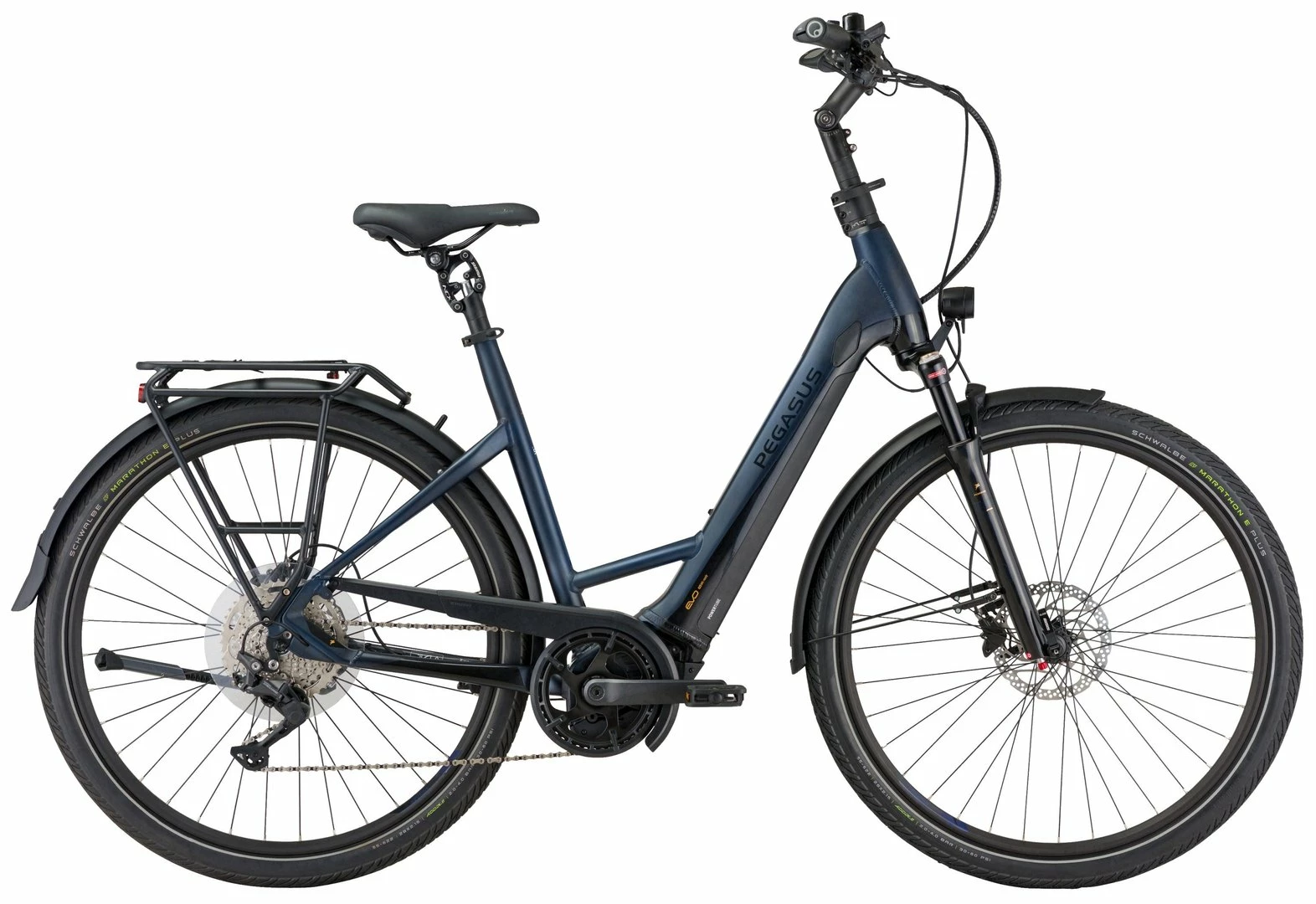 Hydroforming 6061 Alu-Rahmen mit 1.5 Zoll Steuerrohr, Mobie-25-HLO Federgabel, Deore 10-Gang Schaltwerk, Schalthebel und Zahnkranz (11-46), MT-201 Scheibenbremsen mit 180mm Bremsscheiben, Taurus-2000 Hohlkammerfelgen, Bosch Performance-CX Mittelmotor 250W/85Nm, integrierter 400Wh (Serie), 500Wh oder 625Wh (Aufpreis) Akku 36V Li-Ion, gefederte Suntour Parallelogramm-Sattelstütze, Schwalbe Marathon E-Plus Reifen 55-622, Fuxon FS-100 LED-Lampe mit 100 Lux, 12 Volt Lichtanlage, Comodoro Sattel, Höhenverstellbarer UP-Vorbau